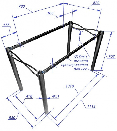 Изделие соответствует техническим условиям ТУ 568230-101-26990135-2003 “Каркасы столов”. Предельные отклонения размеров: габаритных ±4, межосевых ±2.