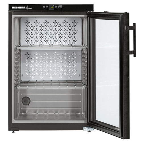 Винный шкаф Liebherr WKb 1812 серии Vinothek предназначен для охлаждения и длительного хранения разливного вина в частных домах, квартирах, отелях и офисах. Модель оснащена сенсорным управлением, жидкокристаллическим дисплеем MagicEye и цифровой индикацией температуры. Внутренняя прокладка выполнена из серого полистирола, корпус - из нержавеющей стали, дверь - из стекла с УФ-покрытием, полки - из цинка.