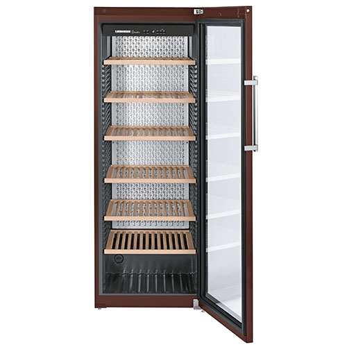 Винный шкаф Liebherr WKt 5552 серии GrandCru предназначен для охлаждения и длительного хранения разливного вина в частных домах, квартирах, отелях и офисах. Модель оснащена кнопочным управлением, дисплеем MagicEye и цифровой индикацией температуры. Внутренняя прокладка выполнена из серого полистирола, корпус - из стали, дверь - стекла с покрытием УФ, полки - из дерева акации.