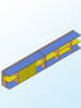 изготовлен из ЛДСП, торцы облицованы кромкой ПВХ 2 мм. Состоит из двух секций. 1-я секция имеет две ниши закрытых дверями и две открытые ниши, с левой стороны открытые полки с закругленными углами; 2-я секция имеет 5 открытых ниш, с правой стороны - открытые полки с закругленными углами
