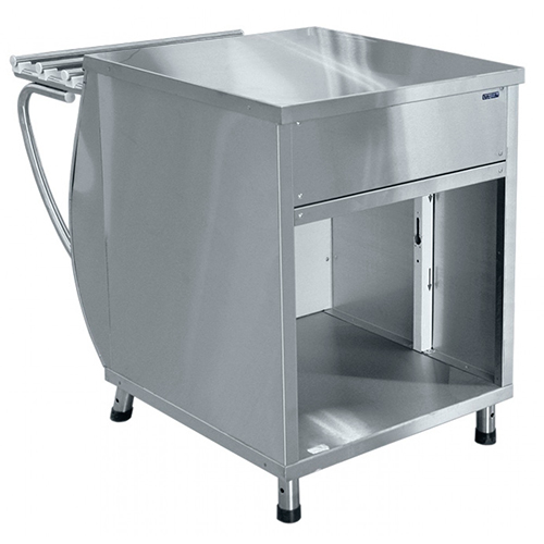Модуль нейтральный предназначен для кратковременного хранения и раздачи потребителю хлебобулочных и кондитерских изделий, может быть предназначен для выкладки посуды или служить подставкой для кухонной техники. Внизу нейтральный шкаф без дверок. Направляющие для подносов и регулируемые по высоте ножки входят в комплект поставки.