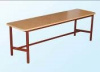 сиденье с закругленными углами изготовлено из ЛДСП, торцы облицованы кромкой ПВХ 2 мм, под сиденьем рамка из трубы 30х15 мм, к которой приварены ножки из трубы диаметром 32 мм. Для усиления конструкции к ножкам крепится Н-образная стяжка. Металлокаркас окрашен порошково-полимерной краской