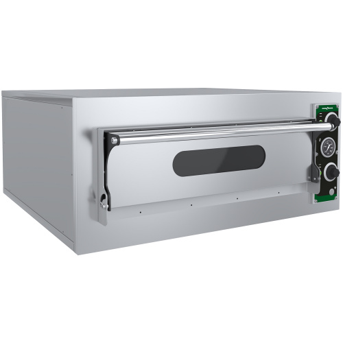 Печь электрическая для пиццы предназначена для выпечки пиццы (одновременно четырёх пицц диаметром по 33 см или одной пиццы диаметром 50 см, в 1 модуле) и хлебобулочных изделий, требующих высокой температуры приготовления, на предприятиях общественного питания.