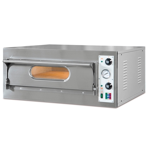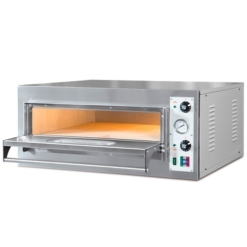 Лицевая панель изготовлена из нержавеющей стали, корпус - из окрашенной стали. Вместимость пицц: 4. Диаметр пиццы 33см. Подсветка камеры. Раздельная регулировка температуры верхнего и нижнего тэна.