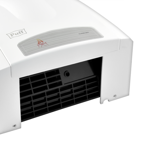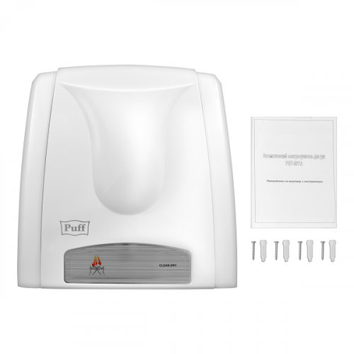 Малошумная. Благодаря оптимальным характеристикам мощность/скорость потока/температура воздуха - позоляет мгновенно и мягко высушивать руки