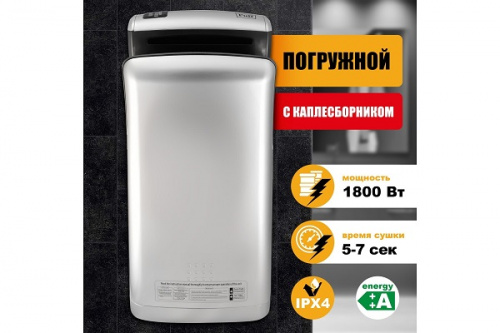 Очень востребованный серебристый цвет. Высокоскоростная сушилка, не сушит кожу. Воздух подается с трех сторон из форсунок, под определенным углом.