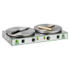 Каркас из нержавеющей стали, жарочная поверхность из чугуна с пескоструйной обработкой с насечками против скольжения, в исполнении с двумя жарочными поверхностями, термостат на 0÷300 °C для регулировки температуры жарочной поверхности.